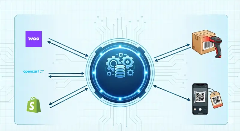 Sync stock, products, and orders with Shopify, WooCommerce, Magento, and more.